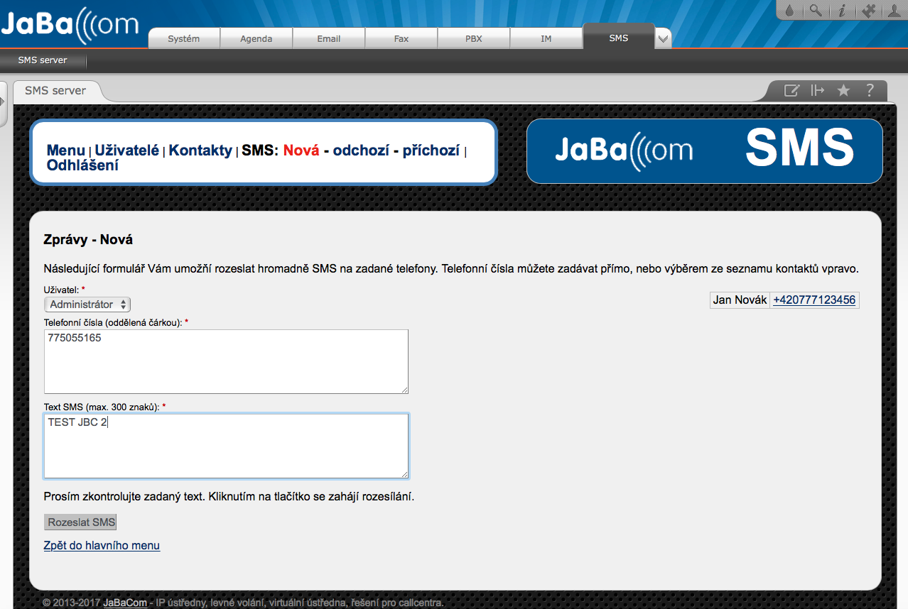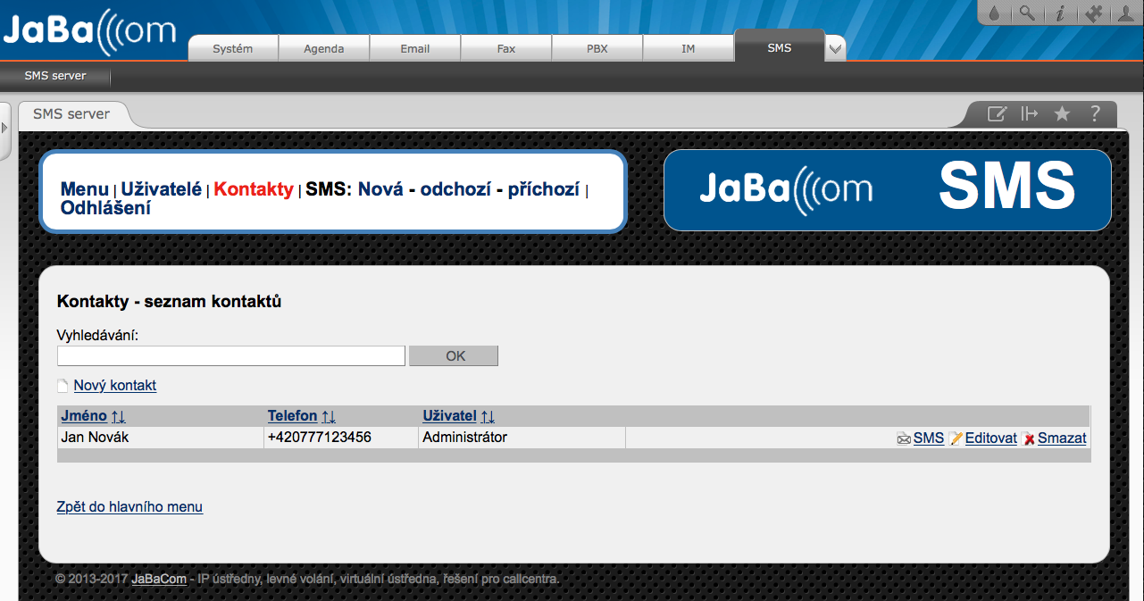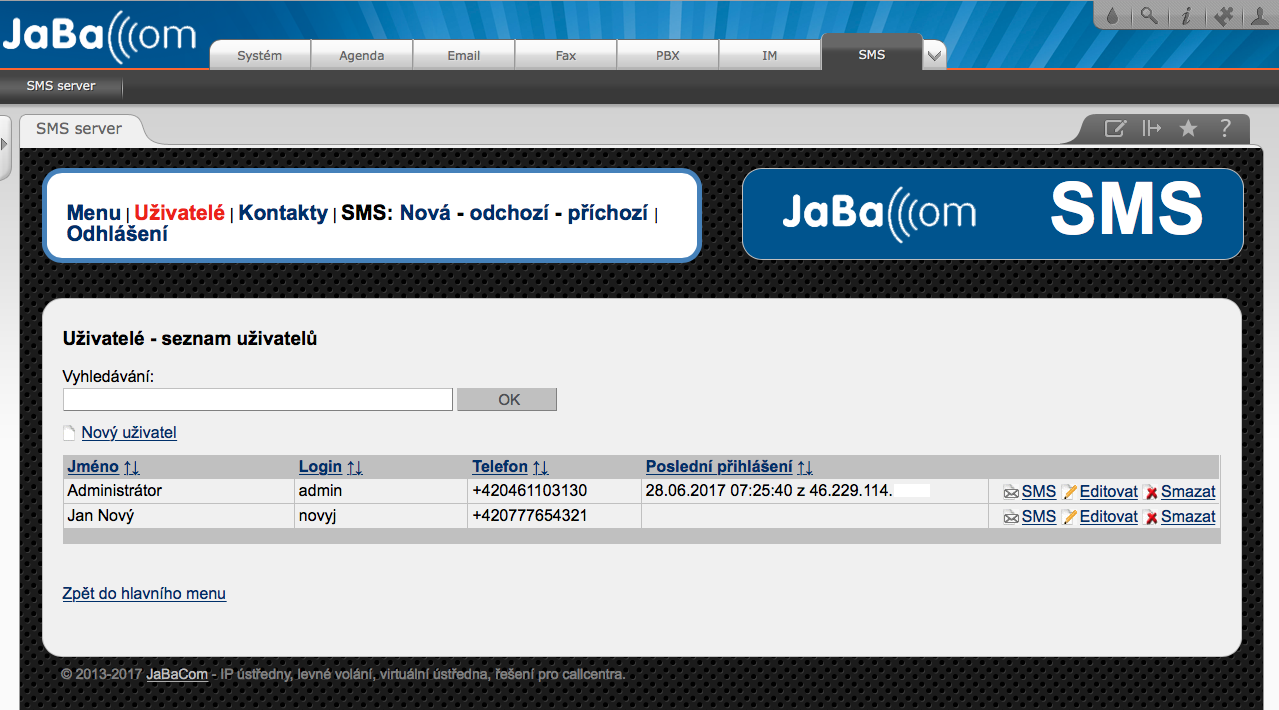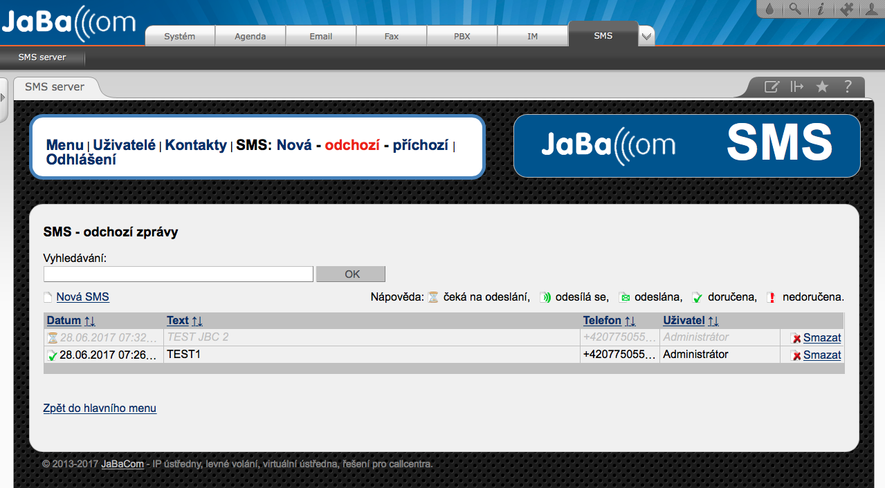 Na těchto obrázcích jsou ukázky SMS serveru. Pro zvětšení kliněte na obrázek.