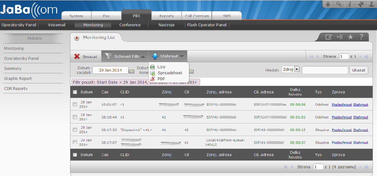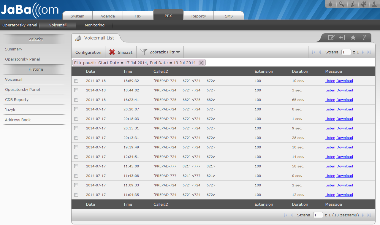 - Nahrávání hovorů do standardního formátu wav (přístupné přes webové rozhraní).